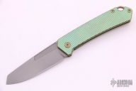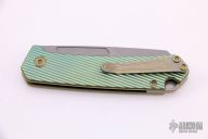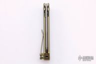 This OEM Slim is a Richard Rogers Design and features a bead blasted blade with high satin finished flats. The handle is milled and anodized titanium with titanium backspacer, hardware and tip up clip. Nice detent, lockup and blade seating. Comes with original packaging and brown leather slip sheath. New from maker.