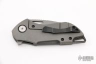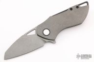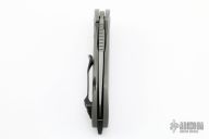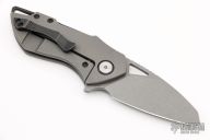 This Riverstone by Grissom Knife and Tool features a dark gray stonewash finished blade with notched thumbrest and flipper. This handle has a dark gray stonewashed titanium frame, black backspacer, pocket clip, pivot collars and hardware. Stainless steel lock insert, ceramic ball bearings and detent. Stainless steel standoffs, blade stop and pivot. Comes with original box and zippered case. New from maker. S/N may differ from pictures. This knife is one of 50.