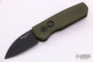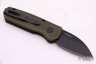 The Runt 5 by Pro-Tech Knives features a black sheepsfoot style blade. The handle features a smooth green aluminum handle with a black tip up stainless steel pocket clip. New from maker!