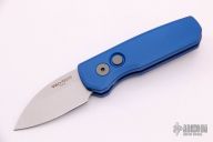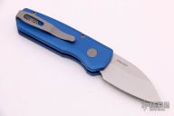 The Runt 5 by Pro-Tech Knives features a tumbled sheepsfoot style blade. The handle features a smooth blue aluminum handle with a bead blasted tip up stainless steel pocket clip. New from maker!