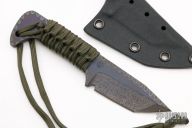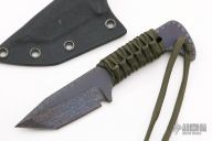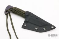 This neck knife by Strider features a flamed and anodized blade with .191" blade stock and 1.248" blade depth, full tang construction with cord wrapped handle. Comes with a kydex sheath. Excellent condition.
