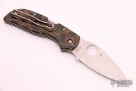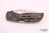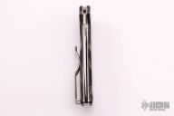 A Chaparral is a shrub native to the Western United States with the unique ability to perennially survive, revive and regenerate after being destroyed by drought. It’s also what Spyderco calls a new and continuing series of gentlemen’s folders. Mid-sized Chaparral folders will have identical blade and handle profiles but showcase variant handle materials. Handle options will be chosen for their elegant appearance and functional utility with a focus directed at making the Chaparral series unique as well as a serious contender in the gent’s knife genre. The Chaparral 2 has a unique textured titanium handle with a mid-positioned back lock and screw-together construction. Attached to the ultra-slim handle, a left-right, tip-up pocket clip arranges the knife deeply inside a pocket. CTS-XHP stainless steel blade. The blade is flat ground and plain edged for the best available cutting performance with non-skid jimping located at both the spine and choil. Has a few light scratches, otherwise excellent condition. Comes with original box and papers.