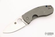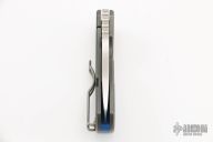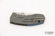 This Techno from Spyderco features a tumble finish blade with thumb hole. Tumble finish titanium frame with notched blue G-10 backspacer. Comes with original box and papers. Comes with original box and papers. Excellent Condition.
