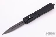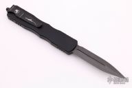 This Signature Series Dirac Delta OTF automatic by Microtech features a D/E Damascus blade with a standard edges. The handle is black aluminum with black ringed hardware and tip down clip. Serial number 128 and dated 04/2021. Comes with original box and papers. Excellent Condition.