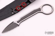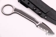 The Bastinelli Spade provides covert defense with a slim, lightweight scalpel design. .158" Blade Stock. .737" Blade Depth. It has a razor sharp scalpel blade and a karambit style finger hole for improved grip and blade control. The spade features a custom kydex sheath. New from maker at the 2021 USN Gathering. Includes a padded zippered case.