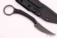The Bastinelli Dopamine Prototype features a black tumble finished blade with notched thumbrest, .120" blade stock and .653" blade depth, full tang construction with black G-10 scales. The spade features a custom kydex sheath. New from maker at the 2021 USN Gathering. Includes a padded zippered case. Prototype, number on blade may differ from picture.