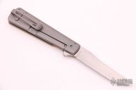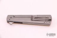 This Barlow Flipper by Jason Clark features a hand rub satin finished blade with a notched flipper. The handle has a G-Carta scale, bead blasted titanium liner and frame, satin finished floating stainless steel backspacer, tip up titanium clip. Rides on IKBS, nice detent, lockup and blade seating. Comes with a leather slip sheath and COA. New from maker at the 2021 USN Gathering.