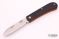 This Spear Point Slipjoint by Enrique Pena features a satin finished blade with a single nail nick. The handle has black G10 covers, orange liners and a stainless steel backspacer. Has half-stop. Includes original box. Excellent condition.