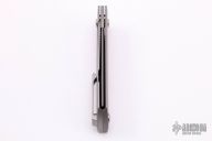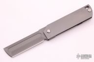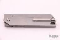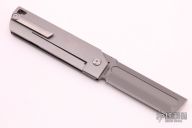 The MaximX (SpaceXi) Flipper version 1 is the LARGE brother of the SpaceX.  The MaximX is the second version of the SpaceX that runs on bearings that allows it to almost fly open.  Its complexity is in its simplicity.  It is sleek and simple, but with a complex 6 face grind with fullers.  It is a modern take on your grandfather’s pocketknife.  It is a pleasure to hold and use.  The Blade is M390 high grade knife steel and the handles are bead blasted titanium.  Comes with original box. New from maker at the 2021 USN Gathering.