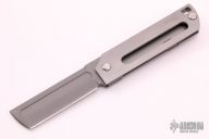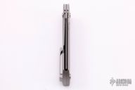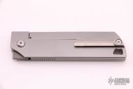 The MaximX (SpaceXi) Flipper version 1 is the LARGE brother of the SpaceX.  The MaximX is the second version of the SpaceX that runs on bearings that allows it to almost fly open.  Its complexity is in its simplicity.  It is sleek and simple, but with a complex 6 face grind with fullers.  It is a modern take on your grandfather’s pocketknife.  It is a pleasure to hold and use.  The Blade is M390 high grade knife steel and the handles are bead blasted titanium.  Comes with original box. New from maker at the 2021 USN Gathering.