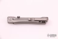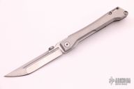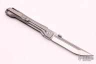 The Onna-Bugeisha (OB) Flipper version 1 is my take on a pocket friendly tactical folder that can be used in combat or camping.  Its complexity is in its simplicity.  It is sleek and simple, but with a complex 6 face grind with fuller.  It is a modern take on your soldier’s pocketknife.  It is a pleasure to hold and use.  The Blade is M390 high grade knife steel and the handles are smooth Titanium. Comes with original box. New from maker at the 2021 USN Gathering.