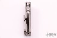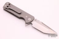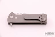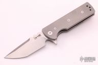 This Chaves T.A.K. features a satin finished tanto blade with the Chaves logo and a notched thumbrest. The handle has a stonewashed titanium frame and a matching reversible skull pocket clip. Comes with original box. Excellent condition.