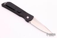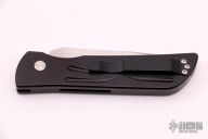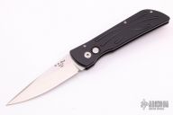 This side-opening automatic from WR Clark has a satin finished blade and a black aluminum handle. Coil spring. Tip up stainless steel clip. Excellent condition. Comes with original box.