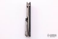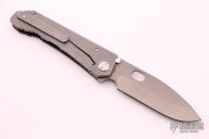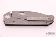This 187 DPT Drop Point by Medford Knife and Tool, features a Grey PVD drop point blade with notched thumbrest and thumbhole. The handle has a black G-10 front scale and a stonewashed titanium lockside and titanium clip. Nice blade seating, detent and lockup. Includes the original box and papers. Excellent condition.