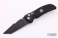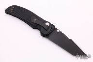 This WTK-Starlight-LT is an Elishewitz design executed by Hogue Knives in collaboration with Wilson Combat. It features a black tanto blade with dual thumbstuds and notched thumbrest. The handle has a black G-10 frame with button lock and safety. Tip up/down reversible black stainless steel clip. Excellent condition. Comes with original box and papers.