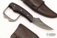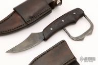 This Hawkbill by Paul Cooper features a hand forged antique finished blade with .205" blade stock and 1.081" blade depth, hidden tang construction. The handle has wood scales with a forged knuckle guard.  Comes with 2 brown leather sheaths. Excellent condition.