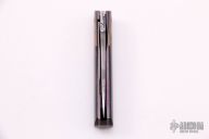 This Mini Yakuza by Chuck Gedraitis features a tanto blade with nail nick and nice hamon. The he handle has copper bolsters, pen shell scales, anodized titanium liners and a carbon fiber backspacer. Nice detent, lockup and blade seating. Excellent condition. Comes with COA.