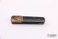 "Ever since I can remember I have had a fascination with knives. My grandfather gave me my first pocketknife when I was 5, and it was that moment that did it. I started making knives by taking apart my mothers kitchen knives. My parents thought that there was something "wrong" with me because I had a fascination with sharp objects. That all changed when I took them to a local knife show and showed them a whole room of people interested in knives. I seriously began making knives when I was 16. I have been making knives for over 25 years. For the past 10 years I have mainly concentrated on making folding knives and automatics. I mainly concentrate on making one-of-a-kind folding knives of my own design, but I do occasionally make a few fixed blades. I specialize in unique file work patterns, and I also do simple carving and some of my own sheath work. For steels I mostly use Damascus, but also use 154CM, CPM154, D-2, 1095, W-2 and others. Handle materials include Exotic Woods, Stag, Pearl, and various types of Ivories including Elephant, Mammoth, and Walrus. As far as knife builds go, I think I am going to concentrate on building more elaborate autos as well as converting some of my older designs into autos. I appreciate the challenge of making an auto, and it keeps knife making exciting for me.”