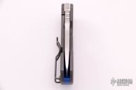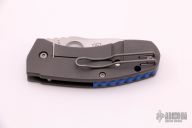 This Techno from Spyderco features a tumble finish blade with thumb hole. Tumble finish titanium frame with notched blue G-10 backspacer. Comes with original box and papers. Comes with original box and papers. Excellent Condition.