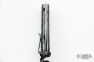 Fred Perrin makes fixed blades and folders of every kind; Forges Damascus steel or uses stock removal techniques. In any case, he always does his own heat treatment and tempering. As far as his background in the martial arts, Fred has spent two years in the French Army Commandos and worked as a bodyguard. He was a national Tae Kwon Do champion and a European full contact stick-fighting champion. He has trained in Kali, and God knows what else. His weapon of choice is the butterfly knife, in which he excels. Aside from being France’s most famous and controversial knife maker and tactical writer, Fred runs a school where he teaches a very unique blend of knife, stick, and empty hand techniques. He is often contracted by France’s elite police units for seminars. He also provides some agencies with custom-made weapons for ballistic testing.