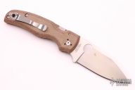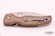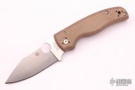 This Shaman Pin by Spyderco features a satin finished spear point blade with notched thumb and finger rests, thumbhole. The handle has natural canvas micarta scales, inlaid stainless steel liners and a satin finished stainless steel backspacer, 4-way reversible stainless steel clip, lanyard hole at the butt. Excellent condition. Comes with original box and papers.