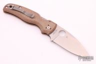 This Shaman Pin by Spyderco features a satin finished spear point blade with notched thumb and finger rests, thumbhole. The handle has natural canvas micarta scales, inlaid stainless steel liners and a satin finished stainless steel backspacer, 4-way reversible stainless steel clip, lanyard hole at the butt. Excellent condition. Comes with original box and papers.