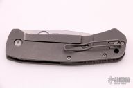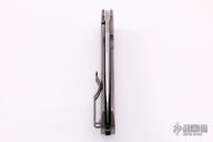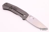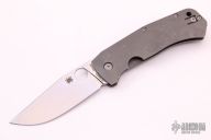 This Slysz Bowie by Spyderco features a tumble finished blade with notched thumbrest and thumbhole. The handle has a tumble finished titanium frame with notched black G-10 backspacer and tip up, left or right reversible clip. Nice detent, lockup and blade seating. Includes the original box and papers.  Excellent Condition.
