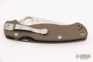 This Paramilitary 2 Linerlock Folder has a satin finished CPM S35VN stainless steel clip point blade with thumb hole and notched thumb rest. Handle is Brown G10 with stainless steel liners and stainless steel 4-way reversible clip. Excellent condition. Comes with original box and papers.