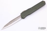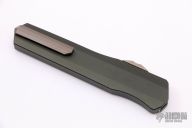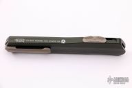 This Cypher OTF is a collaboration between Anthony Marfione and DC Monroe. It features a katana blade with fullers. The handle has an OD Green anodized aluminum handle with bronzed hardware and titanium tip down clip, and a blasted titanium insert at the butt. Comes with original box and papers. Excellent condition. 05/2018 and #164.