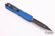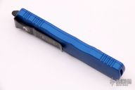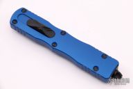 This Dirac Delta OTF automatic by Microtech features a D/E black blade with a standard edges. The handle is blue aluminum with stainless steel tip down clip and black hardware. Serial number 3035 and dated 09/2020. Comes with original box and papers. Excellent Condition.