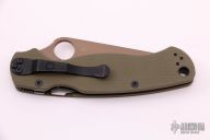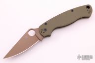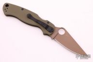This Paramilitary 2 Linerlock Folder from Spyderco has a Flat Dark Earth finished clip point blade with thumbhole and notched thumbrest. Handle is green  G-10 with stainless steel liners and flat dark earth 4-way reversible clip. Comes with original box and papers. Excellent condition.