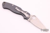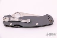 This Paramilitary 2 Linerlock Folder from Spyderco has a satin finished clip point blade with thumb hole and notched thumb rest. Handle is grey G-10 with stainless steel liners and stainless steel 4-way reversible clip. Excellent condition. Comes with original box and papers.