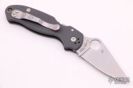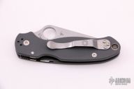 This Paramilitary 3 Linerlock Folder from Spyderco has a stonewashed finished clip point blade with thumbhole and notched thumb rest. Handle has grey G-10 scales with nested stainless steel liners and black stainless steel 4-way reversible clip. Comes with original box and papers. Excellent condition.