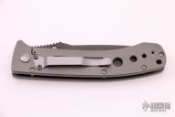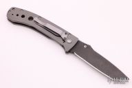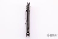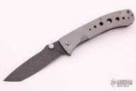 This 760BK LFTI framelock folder is a classic Lum design and features an acid tumbled tanto blade with single thumbstud. Handle is bead blasted titanium with milled holes, black stainless steel tip down clip, and lanyard hole. Excellent condition. Comes with a Benchmade box and papers. This knife has a blade that has been refinished and resharpened, but it was nicely done.