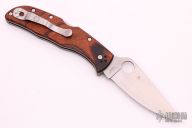 The Pakkawood material that makes up the scales combines the durability and stability of a phenolic laminate with the rich beauty of natural wood. Unlike natural wood, you won't have to worry so much about Pakkawood shrinking, expanding, or cracking. It is also much better suited to moisture than standard woods. Full stainless steel liners, backspacer, and lock back complete this durable little knife. A David Boye dent on the lock release makes it less susceptible to accidental disengagement.