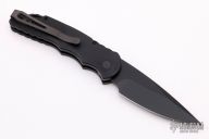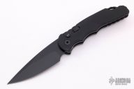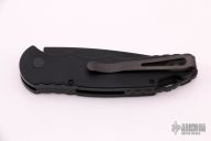 This TR-5 by Pro-Tech Knives features a black spear point blade. The handle has a black aluminum handle with stainless steel backspacer with lanyard hole, tip up blade stainless steel clip.  There is a tritium insert in the push button. Includes the original box and papers. New From Maker at the 2021 USN Gathering.