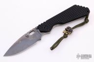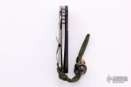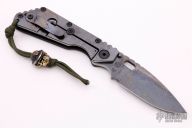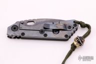 This Monkey Edge SMF by Mick Strider features a laser etched blade with thumb hole and notched thumbrest. The handle is comprised of black MEFP aluminum and laser etched titanium with laser etched titanium clip and Hinderer "Lock Bar Stabilizer" for maximum reverse lock retention. Has a silver/bronze Starlingear bead. New from maker at the 2021 USN Gathering.