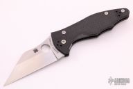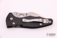 This Yojimbo 2 Linerlock Folder by Spyderco Knives has a satin finished CPM S90V wharncliffe blade with thumb hole. Handle is carbon fiber with single liner (top-side lock), and 4-way reversible stainless steel clip. Excellent condition. Comes with original box and papers.