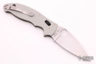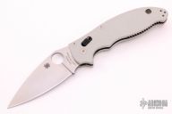 This Spyderco Manix 2 is from a sprint run with CPM CRUWEAR blade steel. Has a satin finished blade, thumbhole and notched thumbrest. The handle is comprised of grey G10 scales over steel liners and backspacer. Lanyard tube in pommel. Includes original box and papers. Stainless steel tip up clip. Excellent condition.