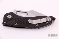 This Stitch Auto by Microtech Knives features a stonewash finished blade and false top edge, notched thumb and finger rests. The handle has a black anodized and milled aluminum handle with a bead blasted titanium backspacer and a bead blasted stainless steel clip, tip up carry, lanyard hole at the butt. Comes with original box and papers. S/N of 6452 and dated 03/2021. Excellent condition.