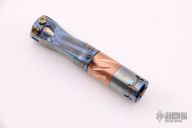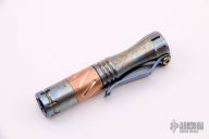This Hoku flashlight from Mitch Lum/Laulima Metal Craft and Joshua Dawson features an acid washed titanium and copper body. 219C 4000k emitter.   Reflector optic.  Includes a single 10440 battery. This piece comes with a custom pouch and original info card. New from maker.