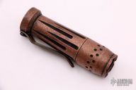 This Starfall Flashlight is a collaborative effort between Joshua Dawson and Mitch Lum. It features copper construction with dimpling and fluting.  Red rubber clicky switch on tail cap. Includes a padded slip case by Dragoncut Design. Specs: Driver - Dragon.  Emitter: 219C 4000K. Optic: Carclo with glow optic. Window: Flat Sapphire Watch Glass. Battery: Single 18650 (Not Included).  New from the maker.