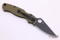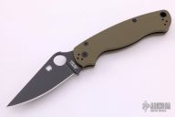 This Paramilitary 2 Folder from Spyderco has a black clip point blade with thumbhole and notched thumbrest. Handle is green G-10 with stainless steel liners and black 4-way reversible clip. Comes with original box and papers. Excellent condition. DLT Trading Exclusive.