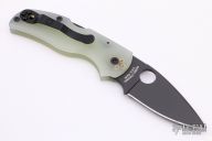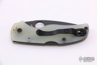 This C41GM4P5 Native 5 Sprint Run by Spyderco features a black finished drop point CPM-M4 blade with swedge, thumb hole and jimping on the thumb rest and choil. The handle is comprised of textured jade G-10 scales over stainless steel backspacer. The steel pocket clip is 4 way reversible. Lanyard hole in pommel. Includes original box and paperwork. Excellent condition.