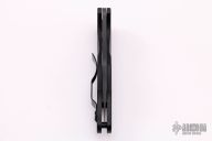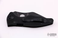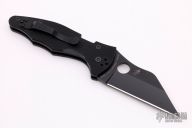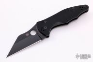 This Yojimbo 2 by Spyderco features a black finished wharncliffe blade with thumbhole. The handle has a black G-10 frame with stainless steel liners, lock is on the spine of handle. 4-way reversible stainless steel clip. Nice detent, lockup and blade seating. Comes with original box and papers. Excellent condition.