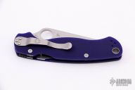 This Paramilitary 2 from Spyderco has a satin finished clip point blade with thumbhole and notched thumb rest. Handle is blue G10 with stainless steel liners and stainless steel 4-way reversible clip. Comes with original box and paperwork.  Excellent Condition.