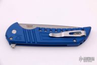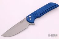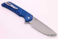 This Mordax by Pro-Tech is a Ferrum Forge design that was produced trough MassDrop. It features a stonewashed blade with flipper. The handle has a blue milled aluminum frame with tip up stainless steel clip. Comes with original box and papers. Excellent condition.