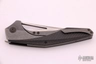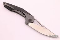 This Zeta Flipper by WE Knives features a satin finished M390 blade with flipper. The handle has a stonewashed titanium and carbon fiber frame, tip up matching titanium clip and backspacer, stainless lockbar insert. Nice detent, lockup and blade seating. Has ceramic ball bearings. Comes with original box and papers. This knife is #557 of 700. Excellent condition.