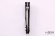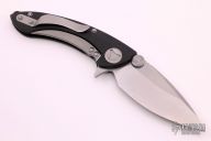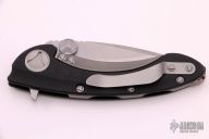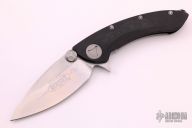 This Whaleshark flipper by Microtech Knives features a tumble finish blade with notched thumbrest and flipper. The handle has a black G-10 frame with bead blasted tip up stainless steel clip. Smooth and fast flipper that requires no wrist action. Strong lock up and nice detent. Dated 04/2012 and #00346. Excellent Condition.