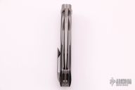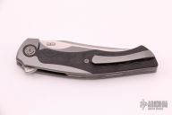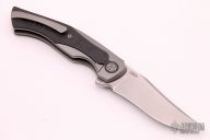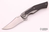 This Coyote Flipper Reate, designed by Emmanuel Le Brun features a two-tone finished blade with flipper. The handle has a blasted titanium frame and backspacer, carbon fiber inlay, titanium tip up clip. Very smooth. Nice detent, lockup and blade seating. Excellent condition. Comes with original case, box and papers.